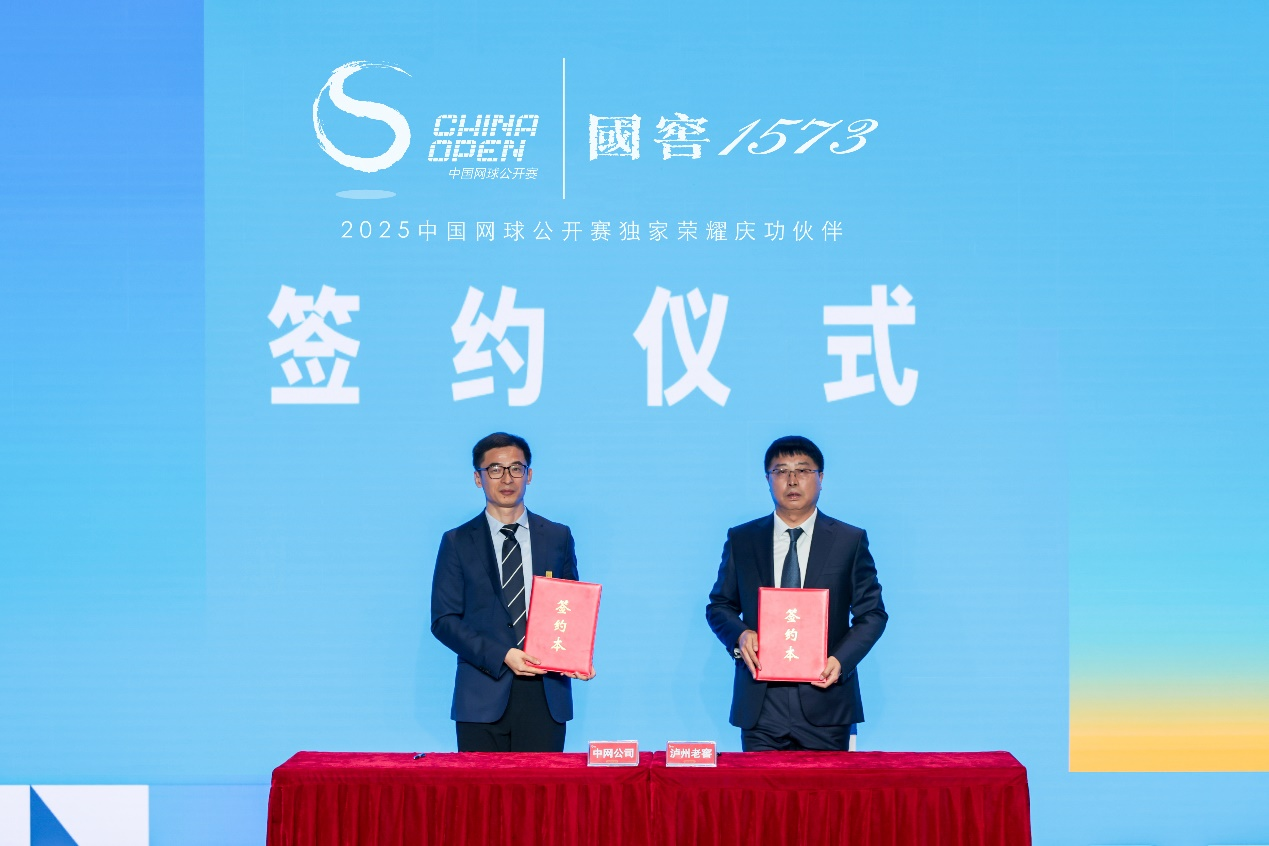 发布会现场,泸州老窖与中网举行签约仪式,中网公司党支部书记、总经理李旭华与泸州老窖股份有限公司副总经理赵丙坤共同签署合作协议,国窖1573将作为中国网球公开赛独家荣耀庆功伙伴为球员加油喝彩、为胜利时刻干杯。