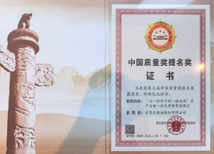 今日,名酒研究所(ID:MJYJS2024)获悉,五粮液再获国家级认可,斩获第五届中国质量奖提名奖。