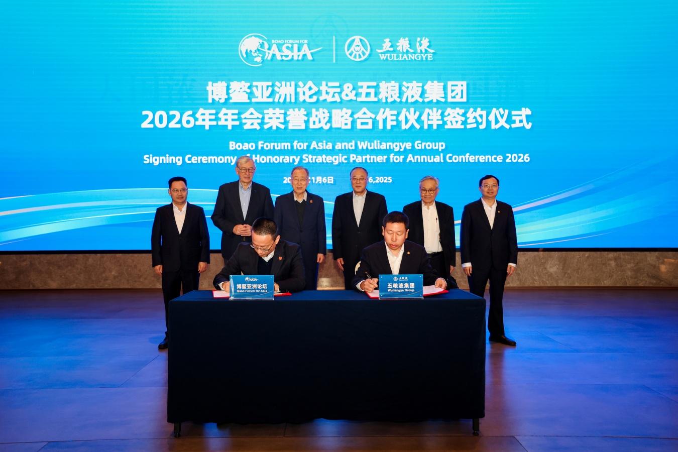 签约仪式在五粮液酒文化博览馆举行。根据协议,五粮液将担任“博鳌亚洲论坛2026年年会荣誉战略合作伙伴”及“博鳌亚洲论坛2026年年会指定用酒”,延续双方在国际平台上的紧密协作。