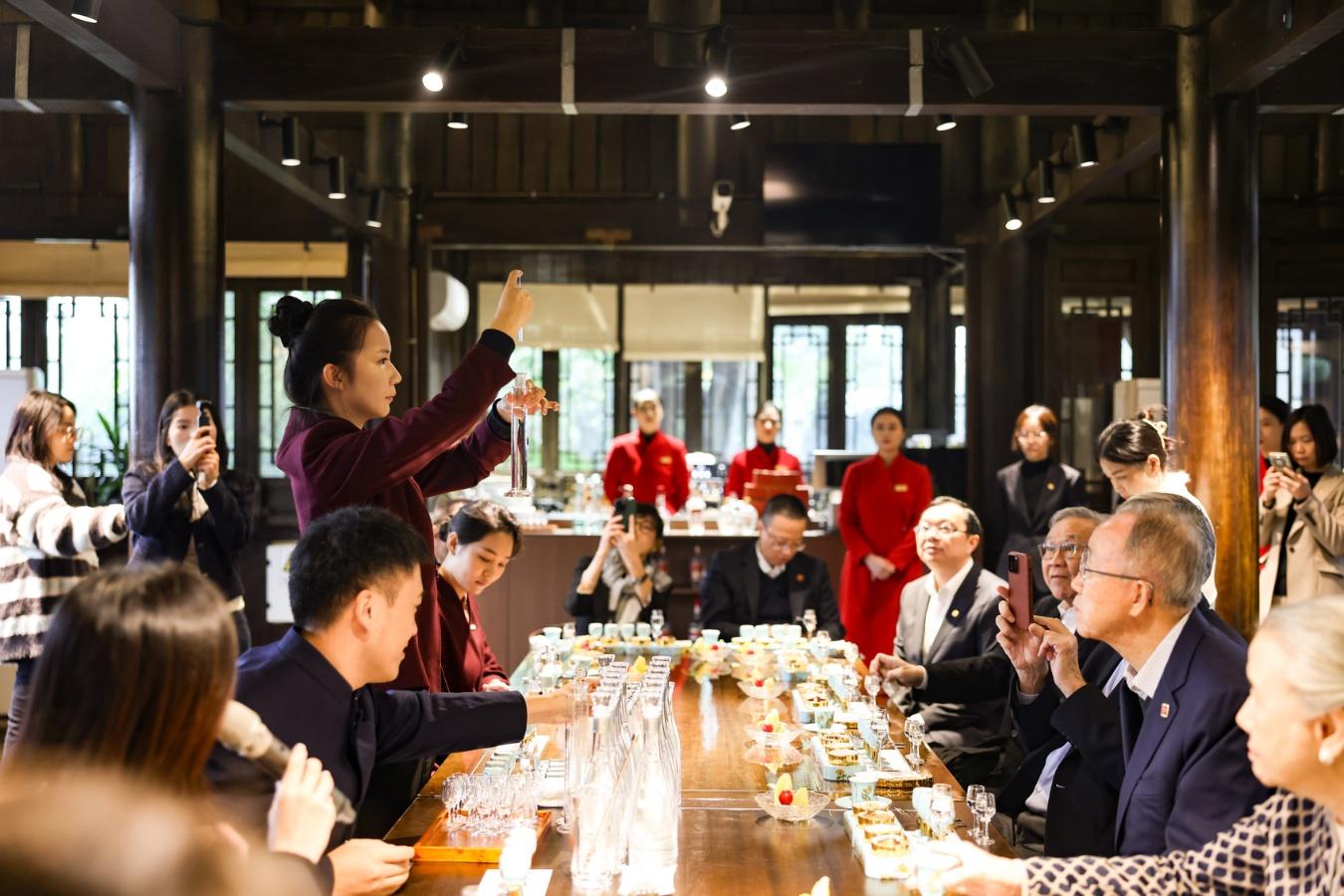 从鹏程广场的合影留念,到生态湿地的悠然漫步;从安乐泉的探访,到醉云楼的勾调体验,整个参访过程既是一次产业考察,更是一场深度的文化对话。嘉宾们对五粮液在绿色发展、生态保护与文化传承方面的实践成果,给予了高度评价。