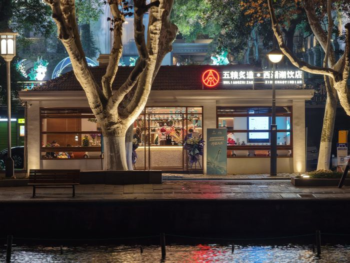 作为浙江首家五粮潮饮店,选址西子湖畔,是五粮液千年窖香与西湖烟雨的浪漫邂逅,也是传统佳酿与年轻潮流守正创新的微醺碰撞。
